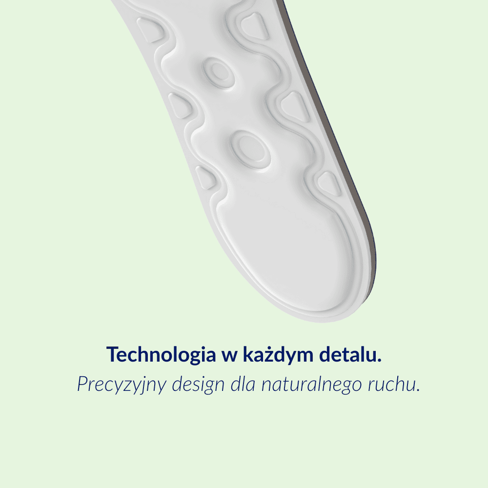 Technologia MEDICOVI zwiększa zdolność do precyzyjnego przeniesienia ciężaru do tyłu na piętę podczas backswingu, wydłużenia fazy przyspieszenia i uzyskania większej prędkości zamachu oraz większego dystansu – bez utraty równowagi.